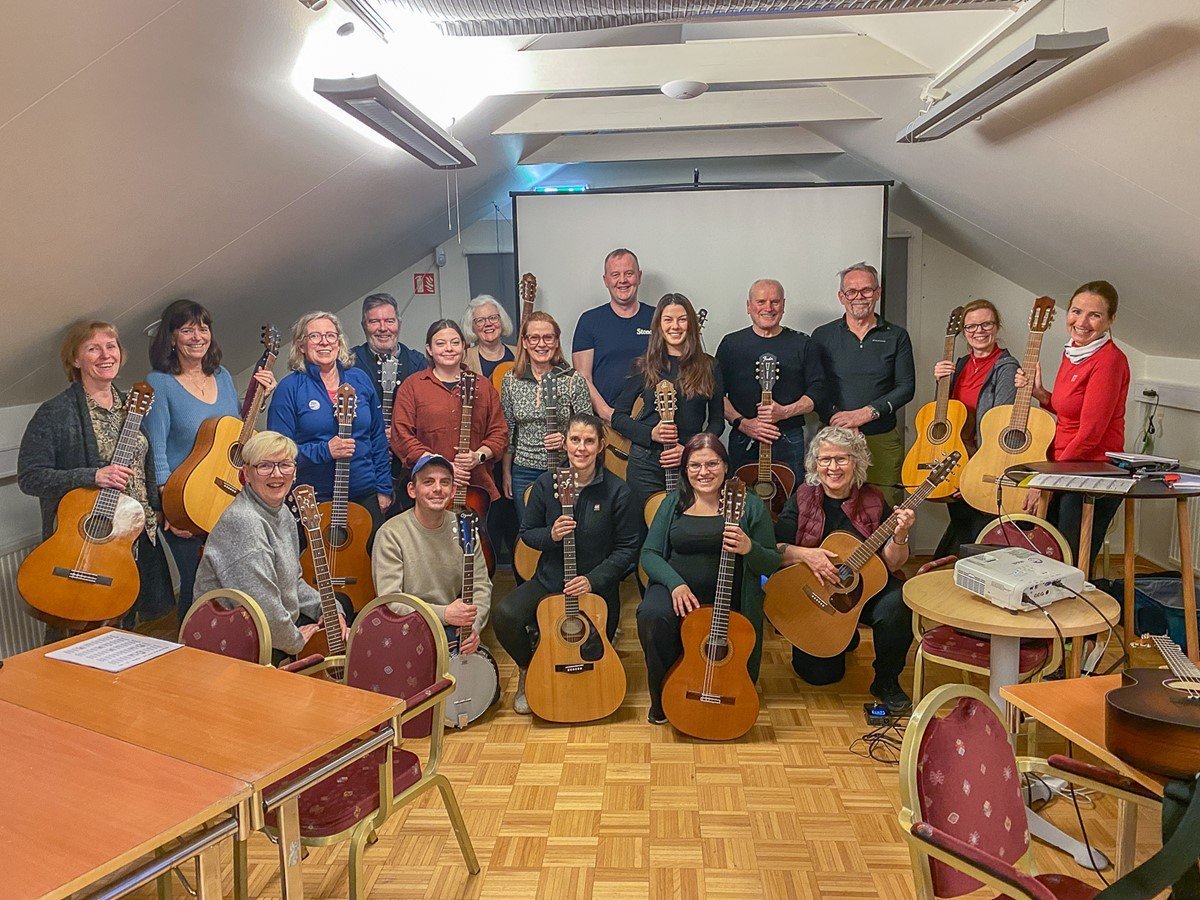 Gítarnámskeið Ferðafélags Íslands og gitarskolinn.is hafa slegið í gegn. Í fyrstu var boðið upp á grunnnámskeið en vegna óska þátttakenda var síðan bætt við framhaldsnámskeiði og fjölmörg tóku þátt og eru tilbúin að halda uppi fjörinu á kvöldvökum í góðra vina hópi á fjöllum. Bent Marinósson hafði veg og vanda að námskeiðunum og kennslunni.