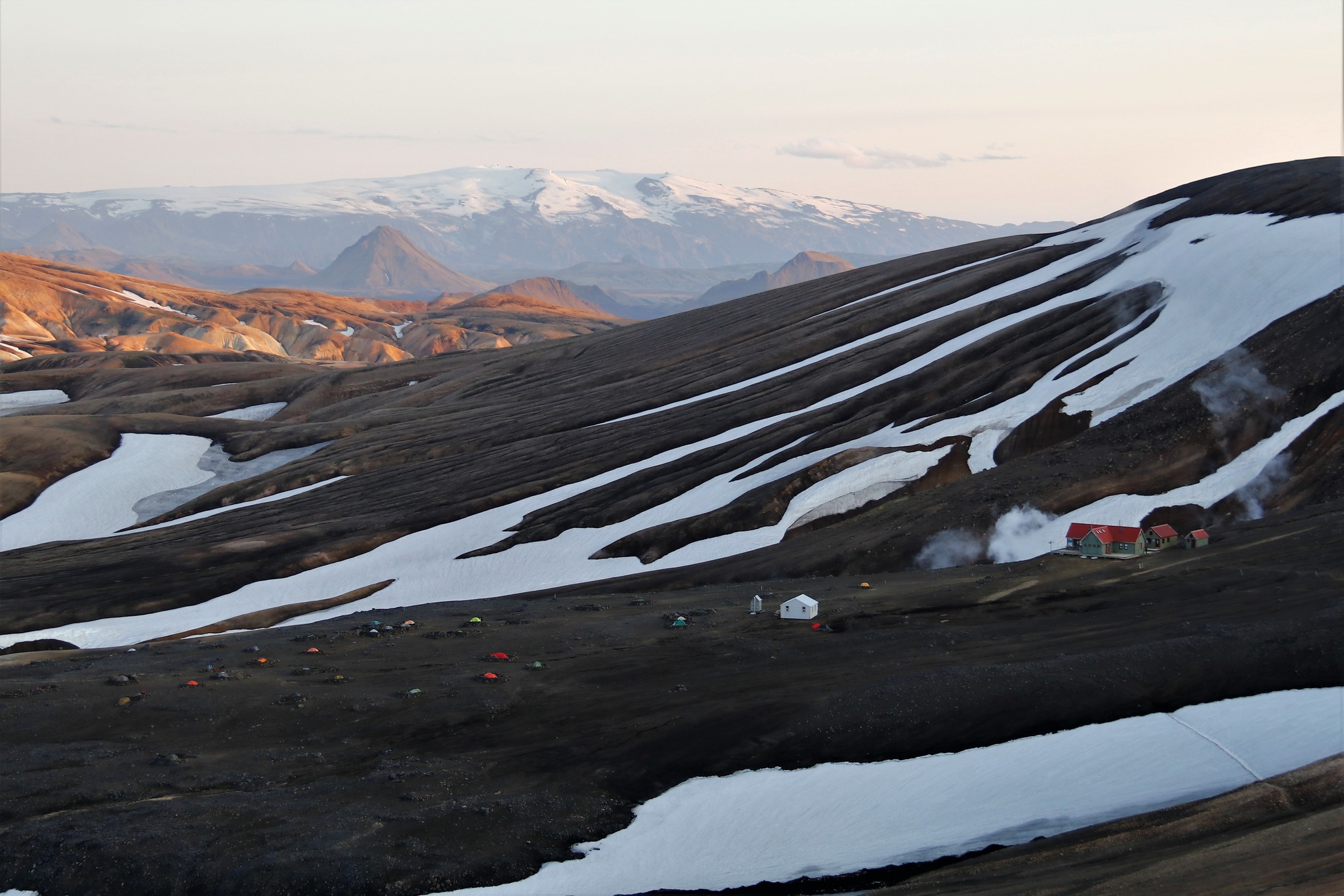 Laugavegsgangan hefst í Landmannalaugum. Þaðan er gengið um Laugahraun og eftir því sem við fjarlægjumst skálasvæðið fækkar fólki á leiðinni.