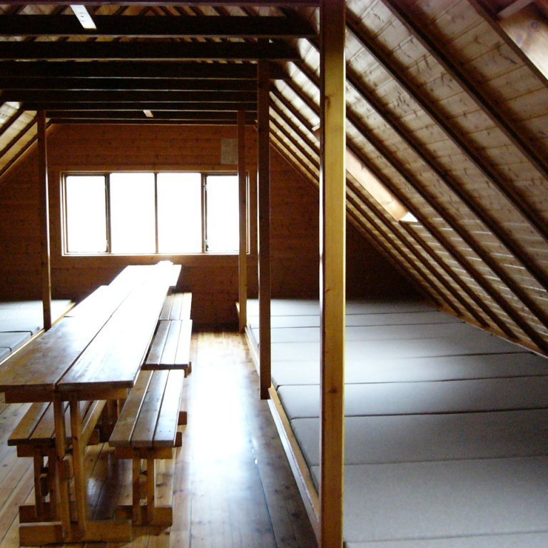 A patio connects the hut with a big toilet/shower house that also serves the camping ground and the numerous day visitors to Landmannalaugar. The wardens live in a roomy hut beside the toilet house.