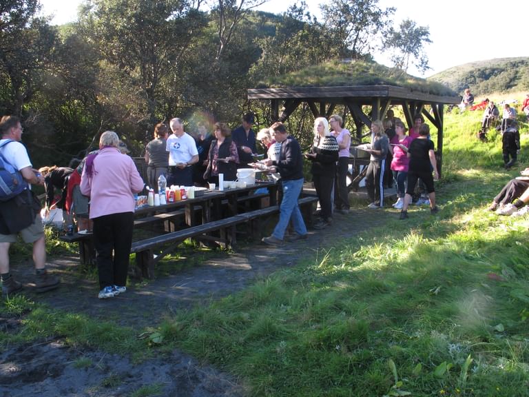 Please note, everyone that is not staying the night either at the huts or at the campsite is required to pay a facility fee for the usage of the bathrooms and outdoor facilities such as grill and benches.