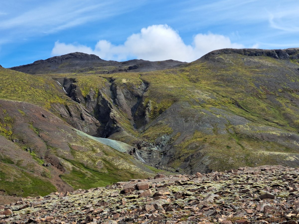 4.d. Gengið frá Múlaskála fram Kamba að Tæpugötuhjalla þar sem ferðin endar. Bílar keyra göngufólki til Hafnar.