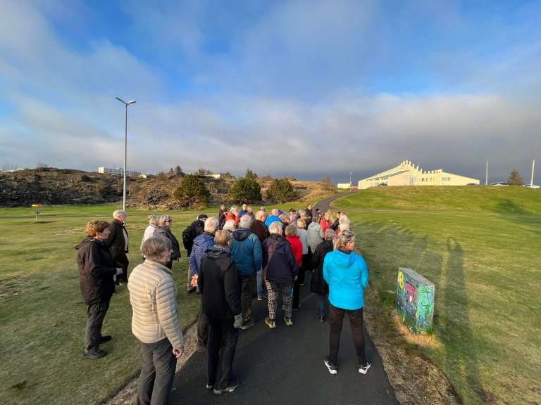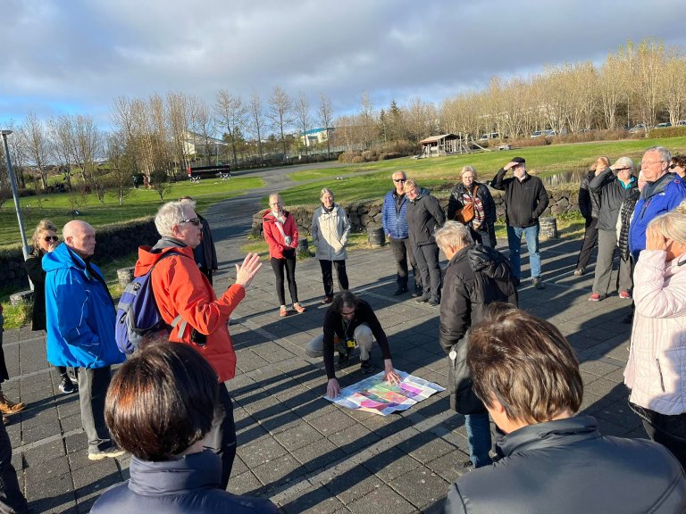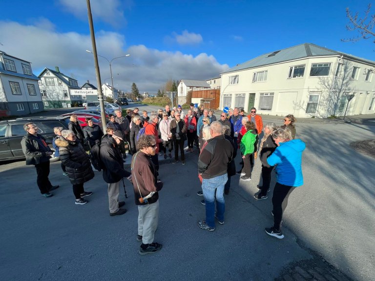 Gangan hefst við Hellisgerði og þaðan gengið í áttina að Víðistaðatúni og hugað að sögunni. Gengið að skátaheimilinu Víðistaðamegin og þaðan að Víðistaðakirkju. Síðan liggur leiðin fram hjá Víðistaðaskóla og Norðurbraut er fylgt til baka að Hellisgerði. Göngutími: 1 ½ -2 ½ klst.