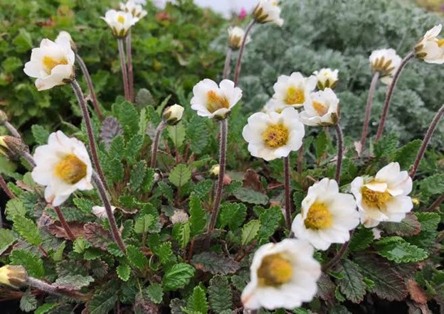 holtasóley sem er þjóðarblómið. Talsvert ber á maríustakk og víða er vallhumall
