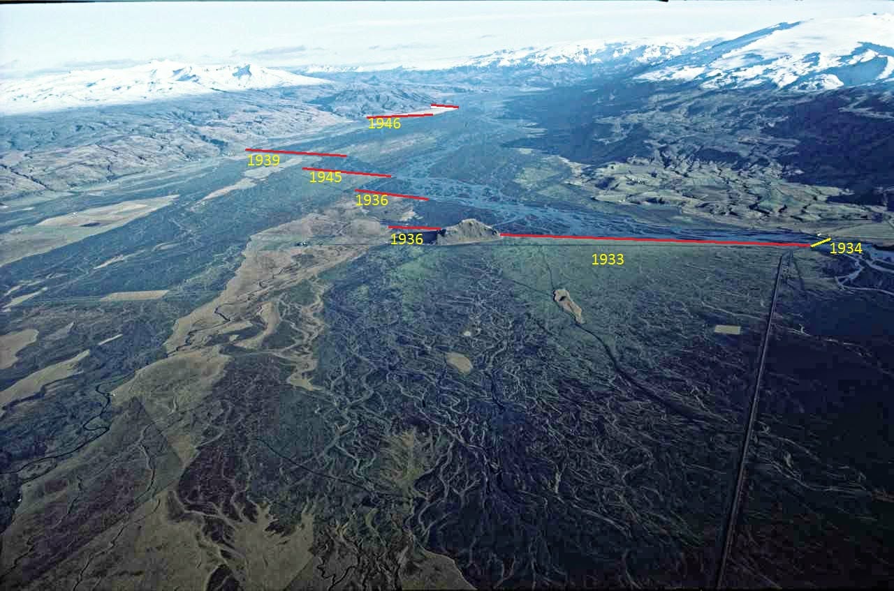 Vatnagarðar við Markarfljót frá fjórða áratugnum.