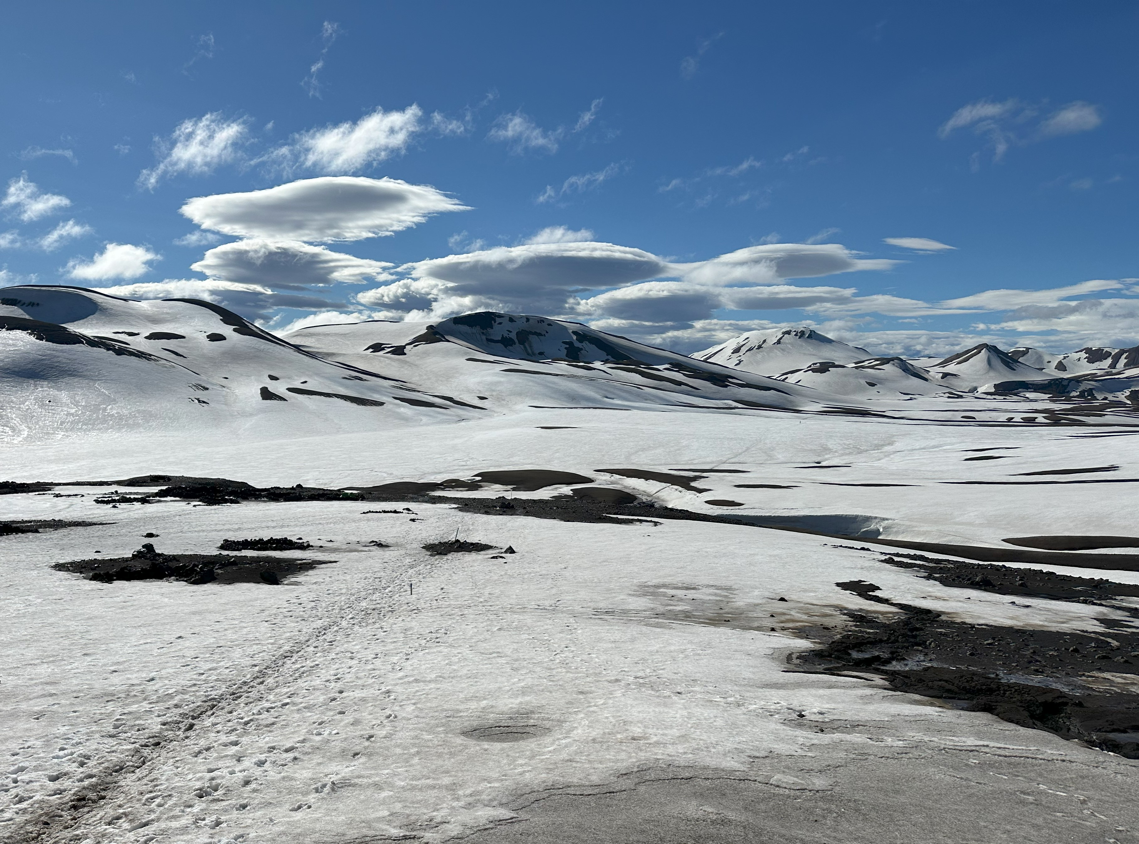 Laugavegsgangan hefst í Landmannalaugum. Þaðan er gengið um Laugahraun og eftir því sem við fjarlægjumst skálasvæðið fækkar fólki á leiðinni.