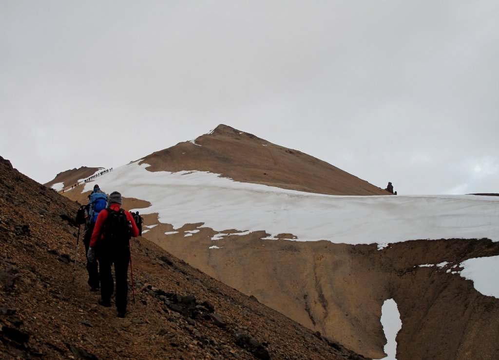 Þegar komið er upp í ríflega 700 metra hæð stendur göngumaður rétt við stakstæðan koll sem heitir Bláhnjúkur og er tilvalið að bæta honum við og gera stuttan útúrdúr upp á kollinn.