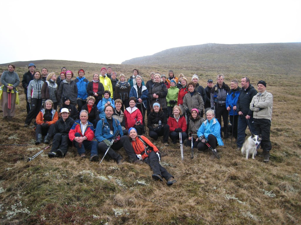 Þegar komið er upp á fjallið blasir við hæsti tindur þess (GPS N.64.08.814 W. 21.42.613) sem er auðþekktur á því að þar standa fjarskiptamöstur allstór. Göngumaður kemst fljótt að því að stígar liggja víða um fjallið og best að halda sig við þær sem eru vel merktar með stikum.