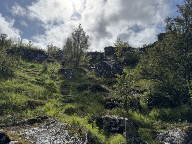 Þá er gengið eftir Hólsbergi að gömlu tröðinni og Galdraprestshólnum og síðan í áttina að Setbergshamri.