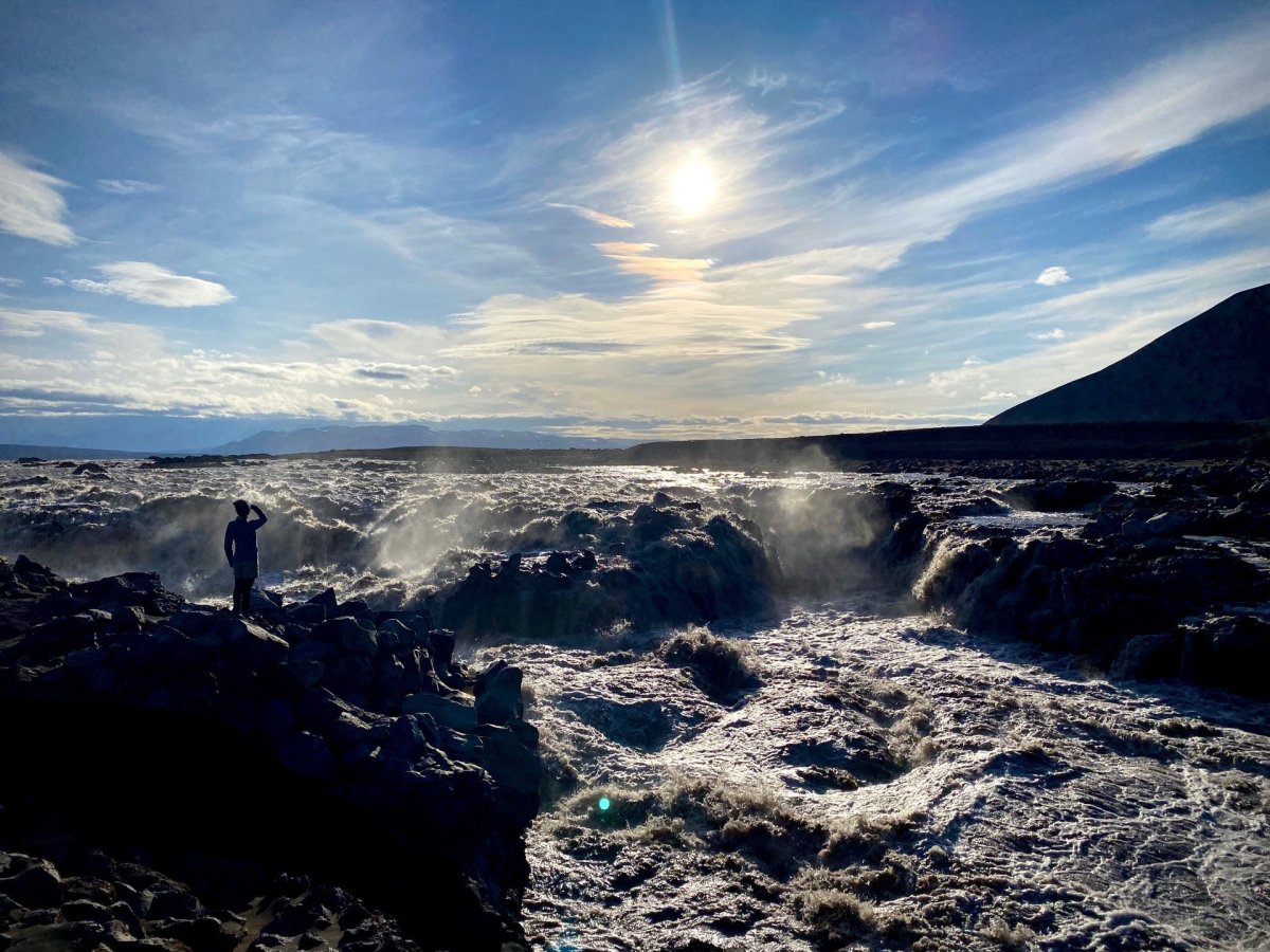 1.d., fimmtud. Ekið um Mývatn í Herðubreiðarlindir. Gengið um þessa einstöku gróðurvin við rætur Herðubreiðar áður en ekið er áfram suður að Dyngjufjöllum og gist í skála Ferðafélags Akureyrar í Drekagili. Um kvöldið er gengið inn að fossi við enda Drekagils eða ekið að Svartárbotnum og Holuhrauni og fossinn Skínandi í Svartá skoðaður.