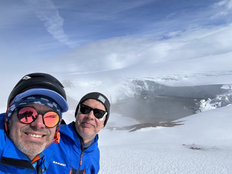 3.d. Keyrt inn að íshellunum. Gengið á mannbroddum yfir Kverkjökul og þaðan á snjó yfir svokallaða Löngufönn upp í Efri-Hveradal í 1760 m hæð. Þar er eitt stórkostlegasta jarðhitasvæði á Íslandi þar sem sjóðandi gufuhverir mæta jökulís. Óviðjafnanlegt útsýni þar sem Herðubreið og Snæfell eru í aðalhlutverki en einnig gosstöðvarnar í Holuhrauni. Sama leið er gengin til baka. Ganga: 17 – 18 km. Hækkun: um 1200 m. Göngutími: 1012 klst.