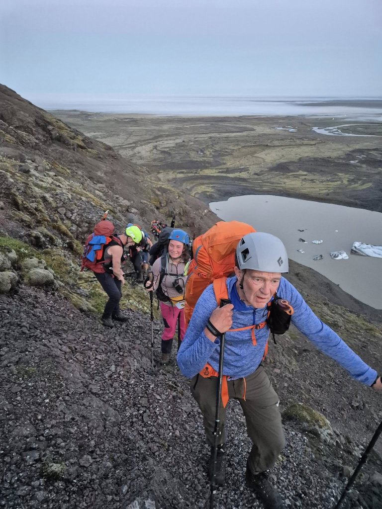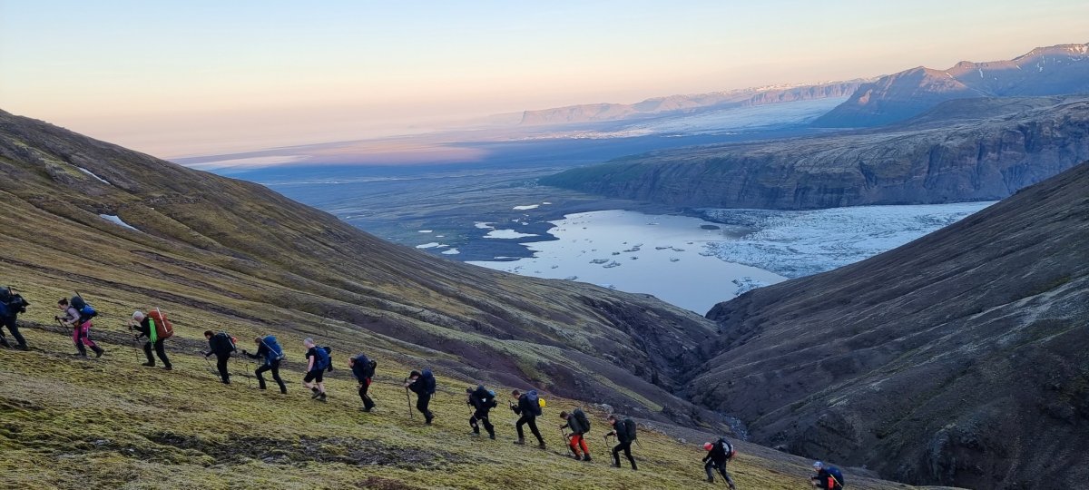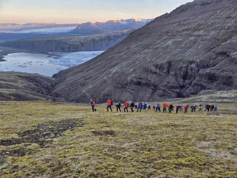 Á göngudagsmorgni hittist hópurinn á bílastæði við Hafrafell sem er Skaftafellsmegin við Svínafellsjökul. Fólksbílafær vegaslóði liggur þangað.