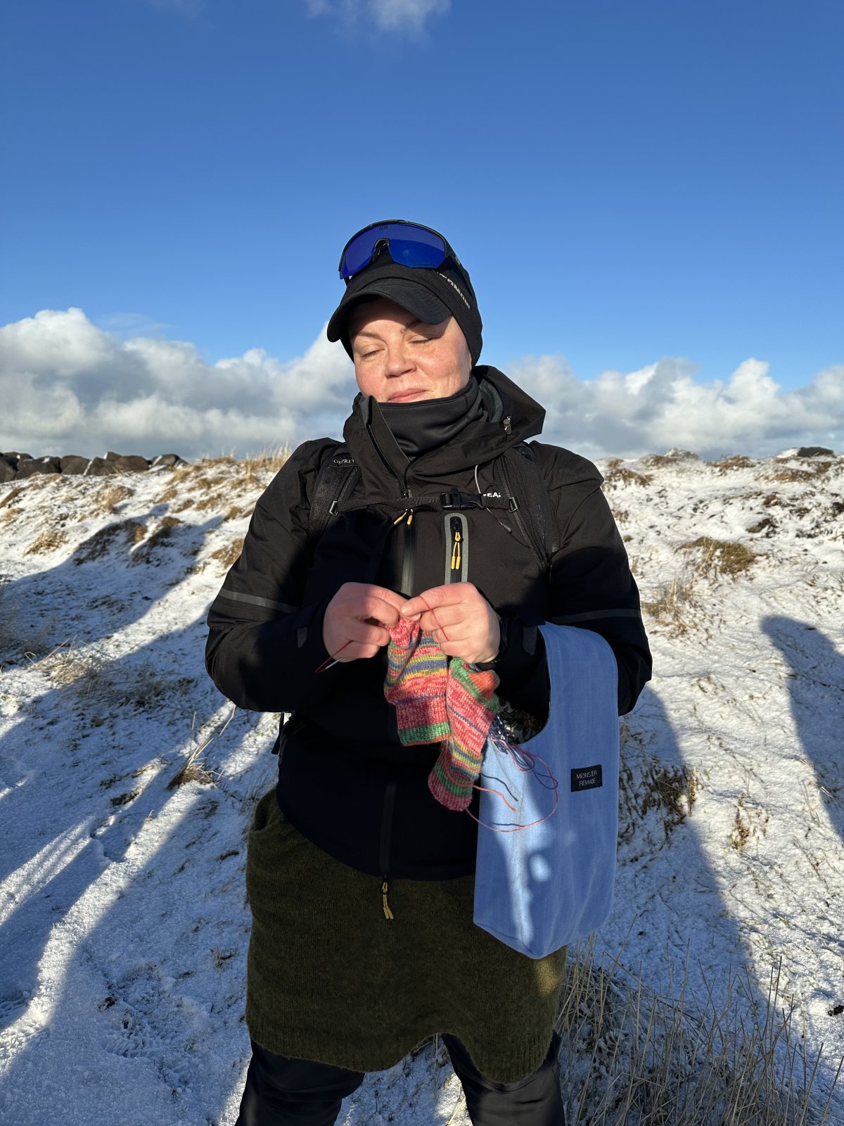 - Húfa, vettlingar og buff um hálsinn