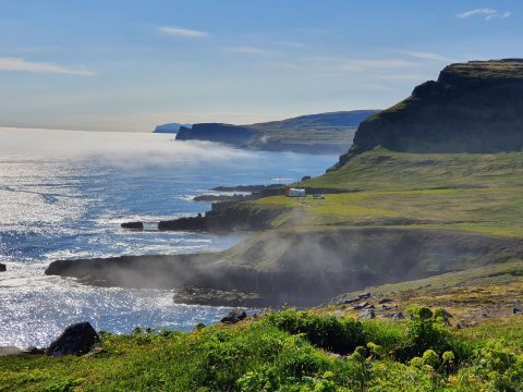 5.d. Stutt morgunganga án bakpoka í nágrenni vitans þar sem við kveðjum þetta stórbrotna landslag. Siglt er aftur til Norðurfjarðar um hádegisleitið. Þar gefst tími fyrir þá sem vilja að heimsækja Krossaneslaug eða fá sé kaffi áður en haldið er heim. Ganga: 4 km. Hækkun: 100 m.